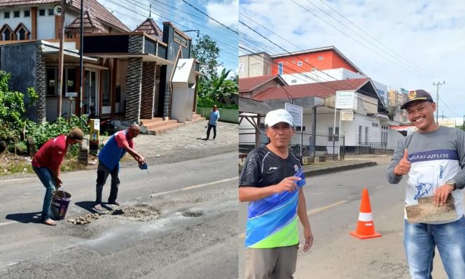 Tanggamus – Kepala Pekon (Kakon) Kutadalom, Kecamatan Gisting, Kabupaten Tanggamus, Tri Eka Saputra, mengambil inisiatif dengan melakukan penambalan lubang di Jalan Lintas Barat (Jalinbar) yang menghubungkan Pekon Kutadalom dengan ibu kota kabupaten dan daerah sekitarnya, Rabu (12/3/2025).