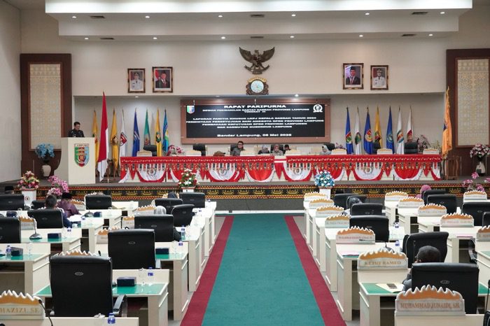 Bandar Lampung – Pj. Sekdaprov Lampung, M. Firsada, menghadiri Rapat Paripurna DPRD Provinsi Lampung dalam rangka Pembicaraan Tingkat II terhadap Laporan Keterangan Pertanggungjawaban (LKPJ) Kepala Daerah Tahun 2024, di Ruang Sidang DPRD Provinsi Lampung, Selasa (6/5/2025).