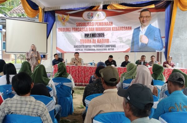 Pesawaran – Giat rutin Anggota DPRD Provinsi Lampung periode 2024 – 2029, menyapa masyarakat sesuai Daerah Pemilihan (Dapil), dengan kegiatan Sosialisasi Pembinaan Ideologi Pancasila dan Wawasan Kebangsaan (PIP-WK) terus dilakukan dalam setiap bulan. Hal itu, bertujuan memberikan pemahaman dan pengamalan nilai-nilai tentang pancasila secara utuh.