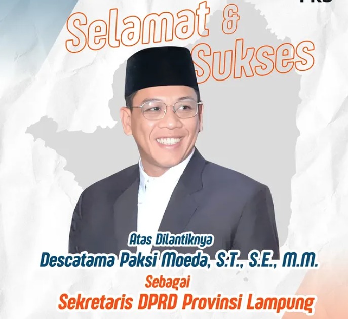 Bandar Lampung, 16 Juli 2025 – Dalam langkah strategis untuk memperkuat struktur birokrasi dan meningkatkan kinerja pelayanan publik, Gubernur Lampung Rahmat Mirzani Djausal melantik sejumlah pejabat eselon II di lingkungan Pemerintah Provinsi Lampung, Rabu (16/7/2025). Salah satu nama yang mendapat kepercayaan baru adalah Descatama Paksi Moeda, yang kini resmi menjabat sebagai Sekretaris DPRD Provinsi Lampung.